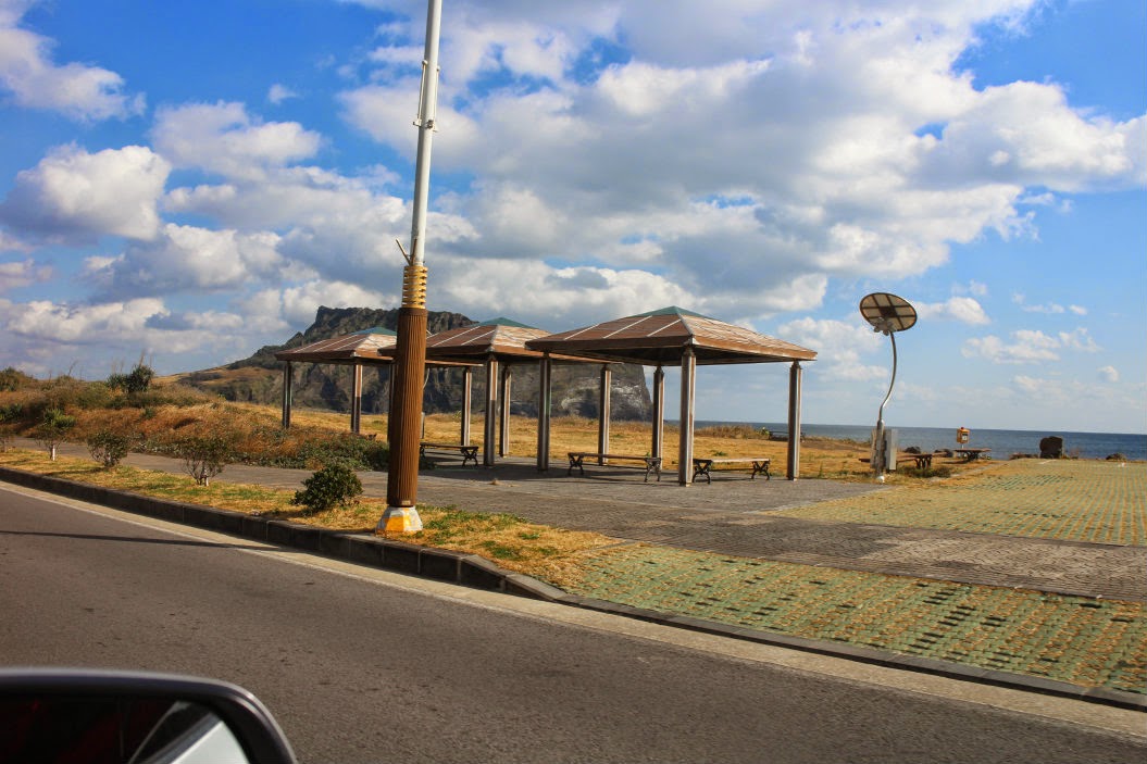Keindahan Pulau Jeju memang tidak boleh dinafikan lagi sehingga tersenarai dalam New 7 Wonders of Nature. Hah!! bukan alang-alang tu. 3 hari 3 malam memang tidak cukup untuk meneroka keindahan pulau valcano ini. Pemandangan laut dan pesisir berbatu dari atas kapal terbang lagi memang sangat mengujakan. Untuk sampai ke jeju kami telah memilih untuk terbang dengan Easterjet dari bandar Busan. 3 hari tidak dapat dimanfaatkan sepenuhnya kerana 2 hari tersebut hujan...satu rahmat tentunya bagi Jeju tapi ralat bagi kami...inilah yang dikatakan sedih lagi pedih. Bagaimanapun, dalam keterbatasan hujan kami tetap cuba meneroka Jeju nasib baik hari pertama kunjungan ke Seongsan Ilchulbong atau dikenali juga sebagai The Sunrise Peak cuaca cerah...spoting gituuu.